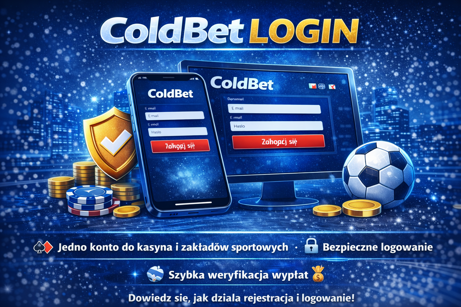 Logowanie odbywa się poprzez ColdBet login i działa identycznie na wszystkich urządzeniach. Jedno konto umożliwia dostęp do kasyna, zakładów sportowych oraz ustawień profilu bez konieczności dodatkowych autoryzacji.